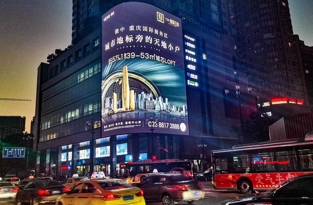 媒體介紹: 該媒體位于重慶最知名的商業(yè)中心解放碑步行街商業(yè)大廈外墻,街區(qū)內(nèi)品牌總數(shù)超過(guò)1600個(gè),其中國(guó)際知名品牌就有200多個(gè)。