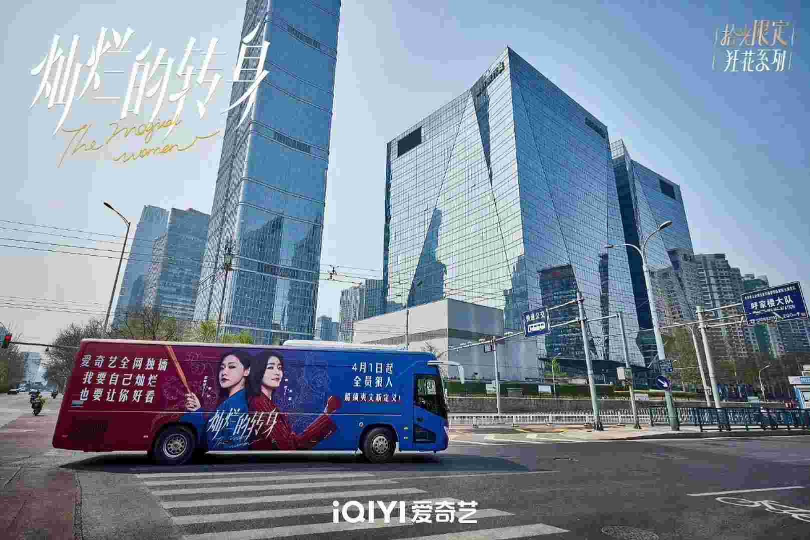 定制創(chuàng)意大巴車經(jīng)過商圈地段,核心辦公區(qū)域,定制路線全車身覆蓋-車身 + 車窗