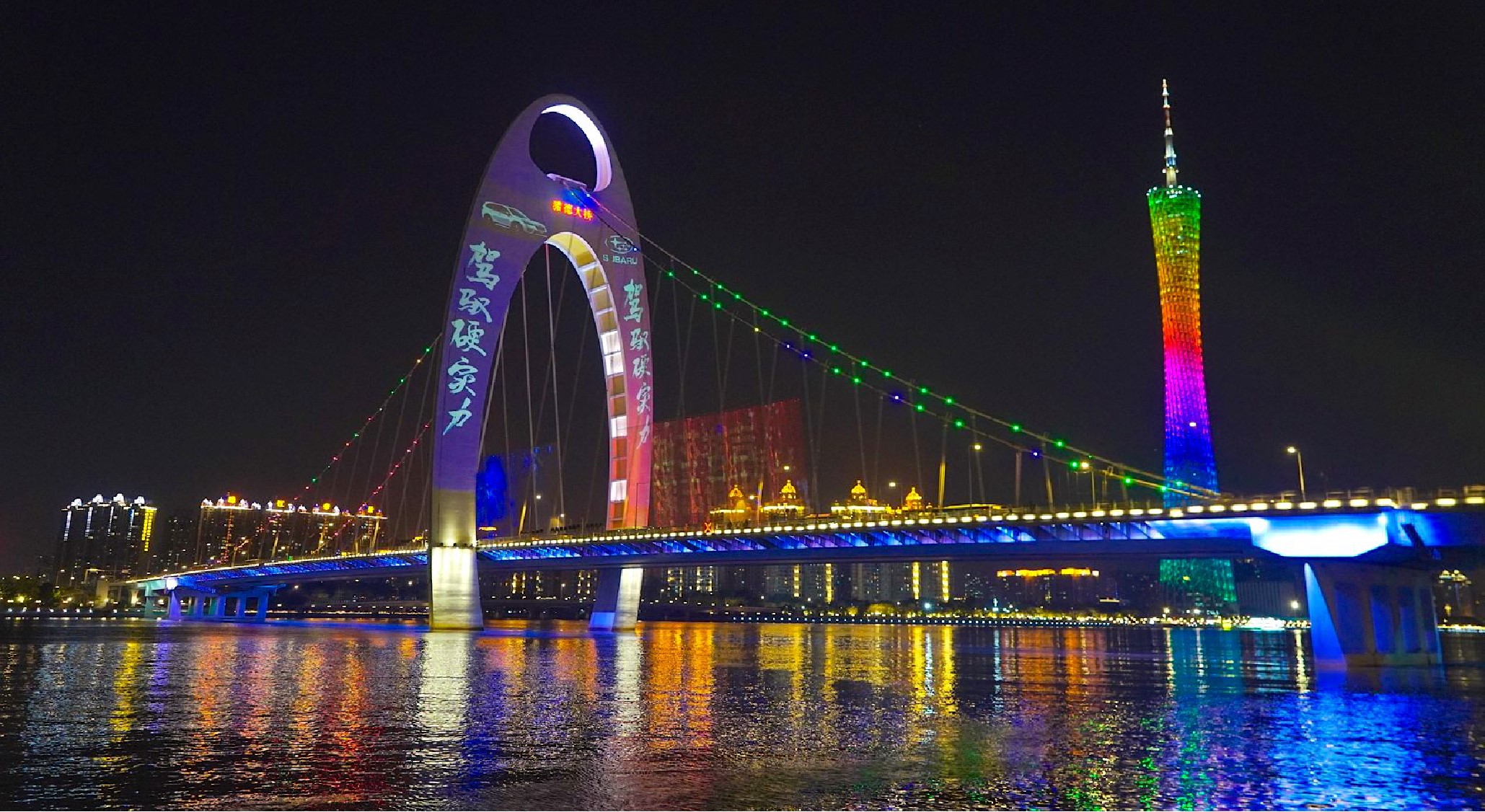 廣州地標(biāo)獵德大橋燈光秀廣告