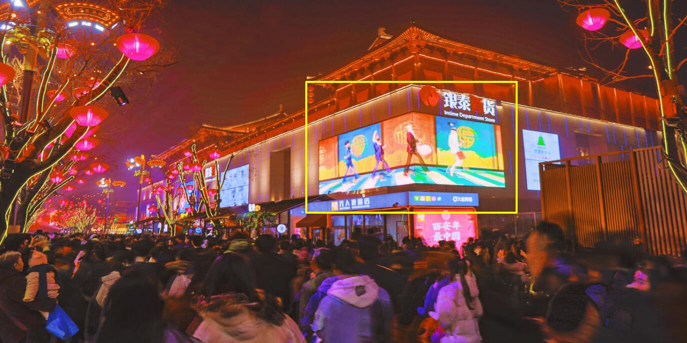 西安小寨國貿(mào)LED廣告屏,位于西安城市第一商圈,占據(jù)優(yōu)越地理位置,吸引眾多國際、國內(nèi)外知名企業(yè)、品牌常年廣告投放,現(xiàn)已升級改造為總面積達1908m、分辨率達標準8K、西北地區(qū)排名第-的戶外藍光大屏。