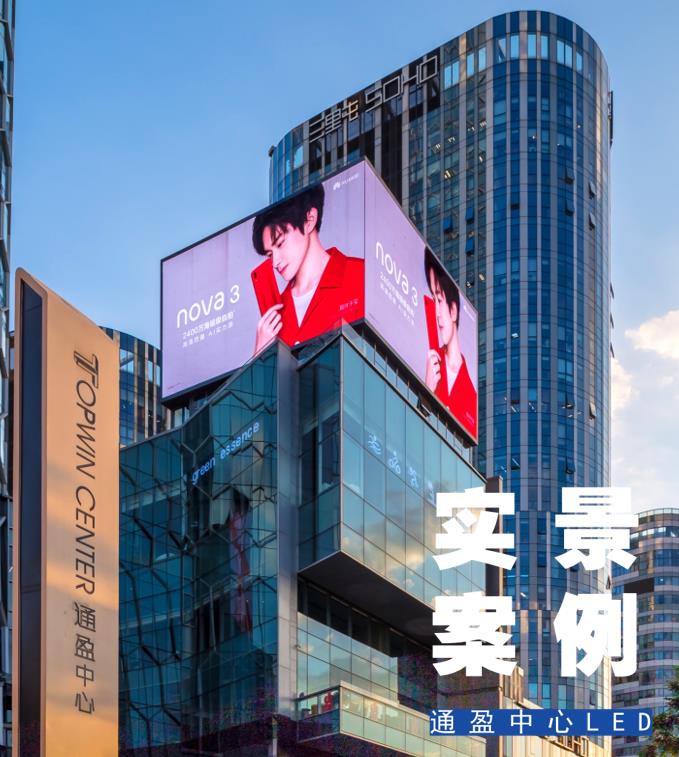 | 北京三里屯通盈中心: 樓頂展示面為東、西向,畫面同步播放。 樓體幅寬80米,高150米,為三里屯地區(qū)第一高樓。 最大程度影響工體北路、二環(huán)、三環(huán)、三里屯商圈人群 |