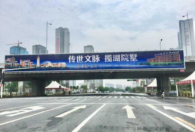 襄陽鉆石大道東風(fēng)本田4S店門口鐵路橋橫跨三面翻廣告