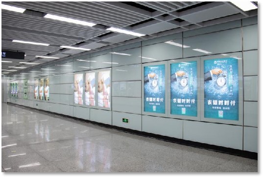 公共區(qū)3連4封燈箱位于個站點出入口過道處,為進(jìn)出站點必經(jīng)之路。