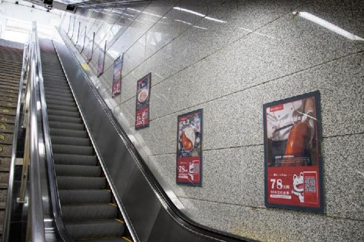 投放形式以單邊樓梯統(tǒng)一投放,通過不斷重復(fù)的內(nèi)容畫面可有效加強(qiáng)乘客的廣告記憶。