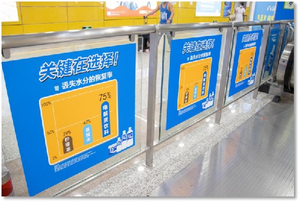 創(chuàng)意玻璃貼為粘貼在站臺與站廳上的玻璃圍欄上的海報,可粘貼的范圍廣泛,并且廣告位置以單幅畫面計算,粘貼位置與組合靈活多變;