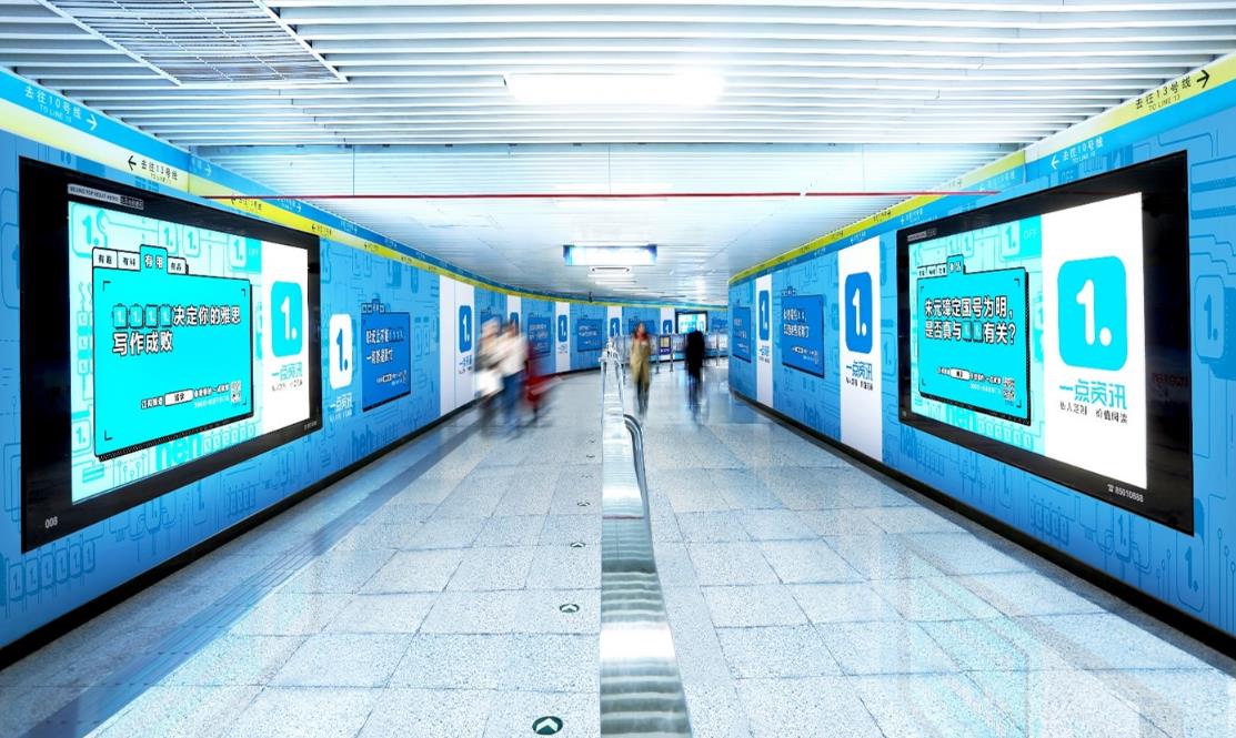 地鐵墻貼廣告是大面積的墻面海報(bào)廣告,一般位于地鐵站換乘通道的墻壁上,這種廣告形式的畫(huà)面面積比較大,一般只有一些大型換乘站點(diǎn)才有這種廣告形式。