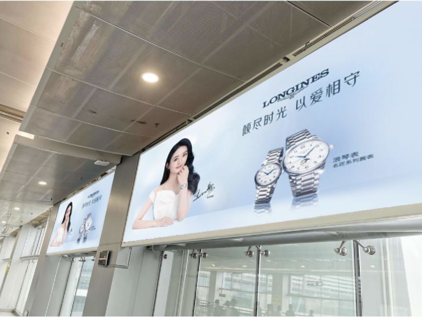 位于1號門正對,乘坐入境扶梯必經(jīng),與地鐵接駁位于4號線地鐵出口上方,人流量大這里是出入境旅客人流匯集點,與旅客距離近,有很好的視覺沖擊。