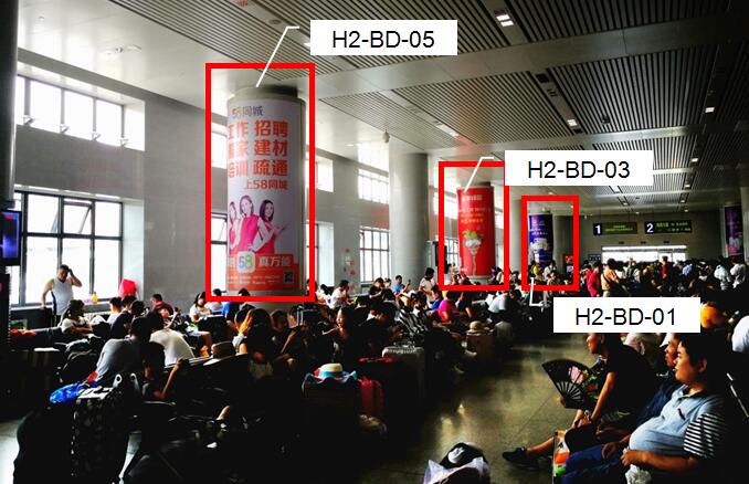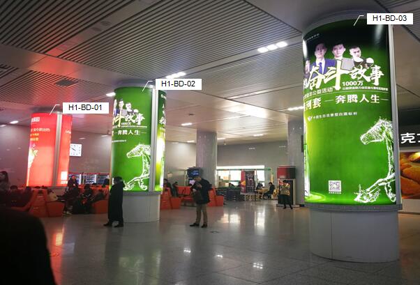 | 呼和浩特高鐵站燈箱 媒體編號(hào):HHHT-H1-BD-(01-03) 媒體位置:一層候車(chē)室 媒體類(lèi)型:包柱燈箱 最小售賣(mài)單位:1 媒體數(shù)量:3 廣告尺寸(m)寬*高:2.7*3.9*2面 廣告面積(㎡)=21.06 刊例價(jià)(萬(wàn)元/月)10/根 |