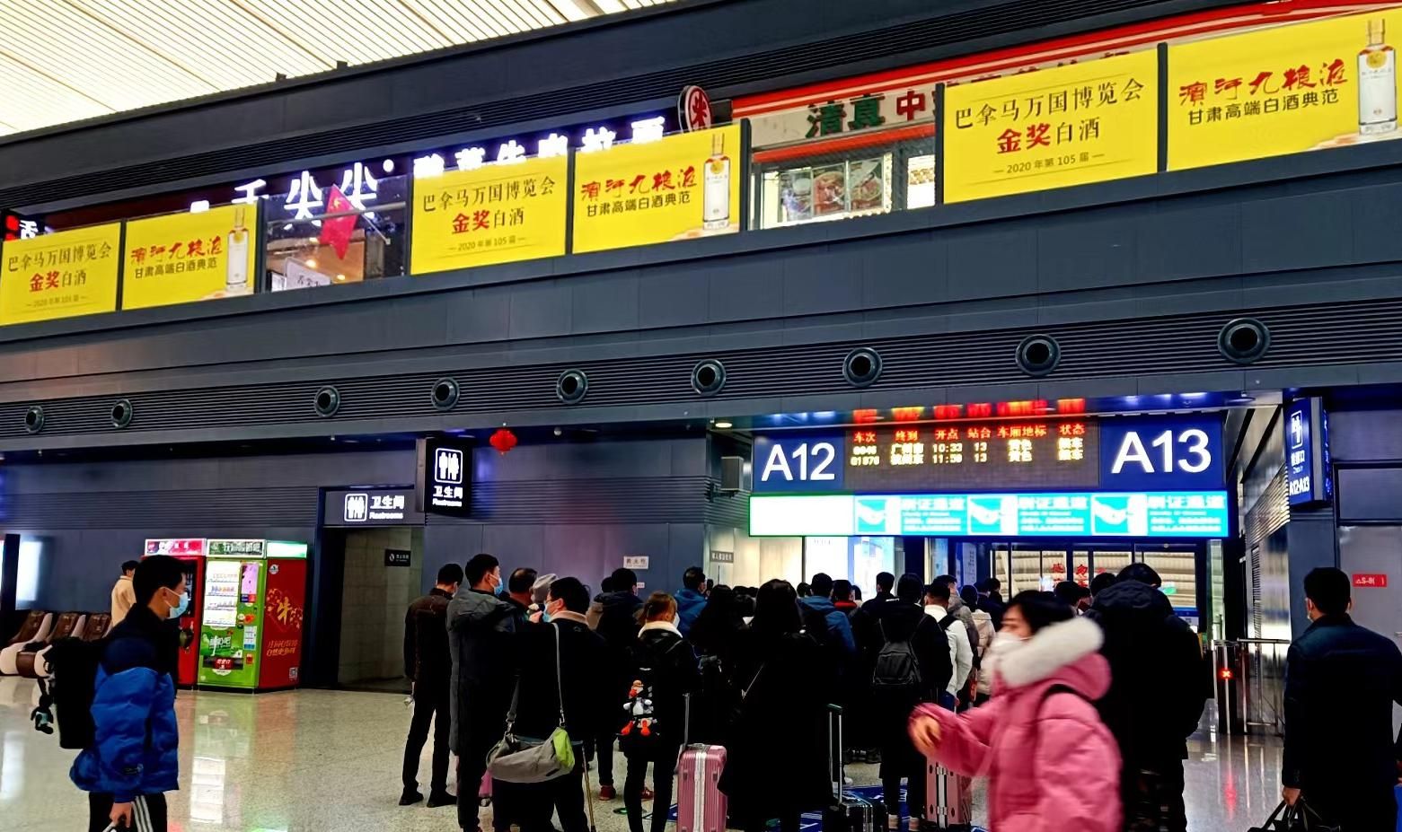 蘭州西客站候車室進(jìn)站閘口玻璃圍欄廣告