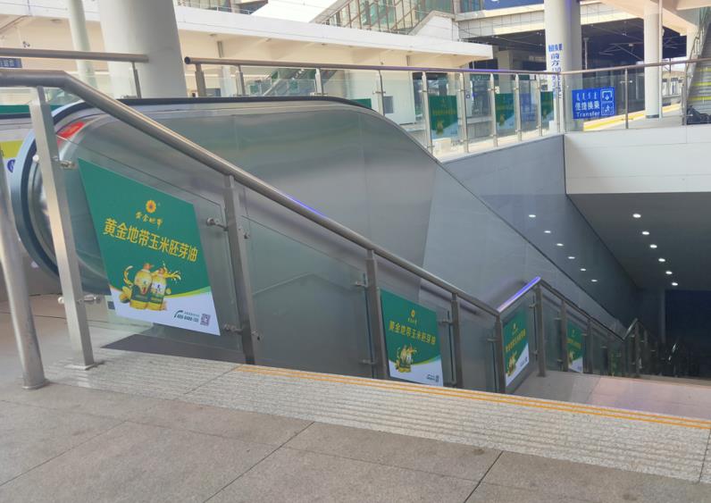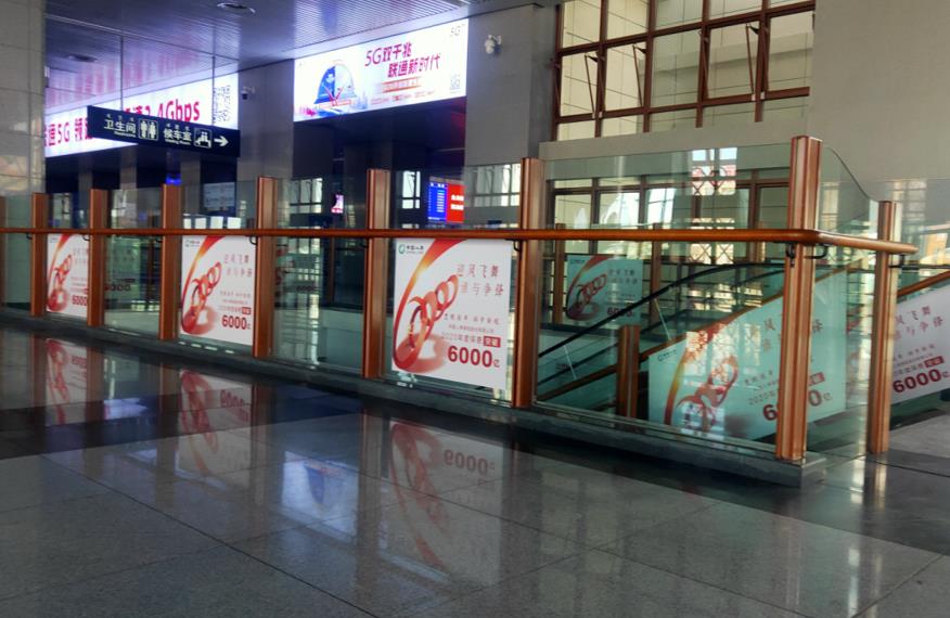 通遼站進(jìn)站大廳進(jìn)站扶梯廣告、天井圍欄玻璃貼廣告