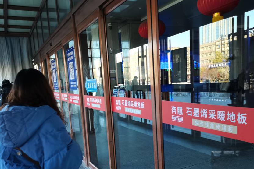 通遼站進(jìn)出站大廳玻璃門防撞貼廣告