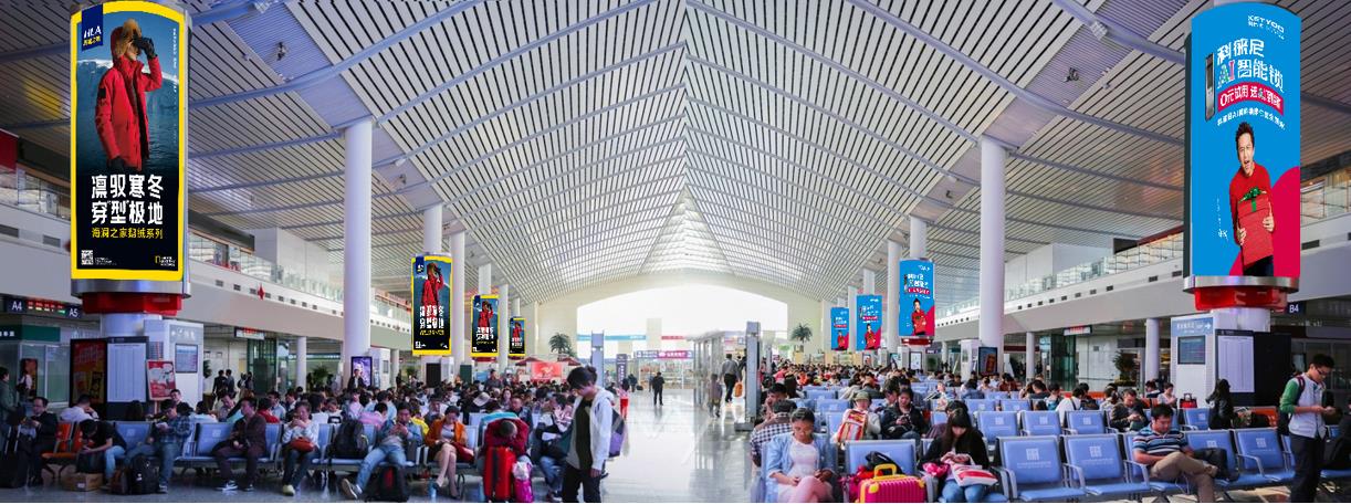 1、位于候車大廳,全場覆蓋,360度展示無死角,是品牌傳播的絕佳之處;