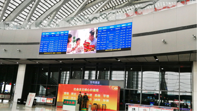 天津西高鐵進(jìn)站大廳led廣告