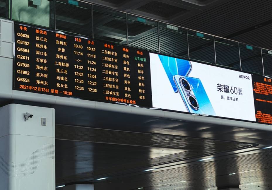 周口東高鐵站led屏廣告,周口東站高鐵大屏廣告