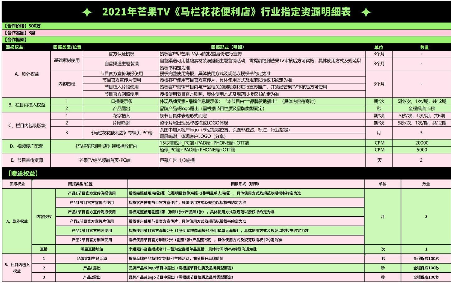 2021年芒果TV《馬欄花花便利店》行業(yè)指定資源明細表