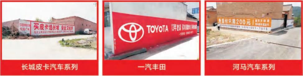 墻體廣告作為一種新興的大型戶外廣告形式,在農(nóng)村和中小城市旁, 墻體廣告隨處可見,直接面對您的消費者進行宣傳,其以出現(xiàn)頻率高、分布范圍廣、費用低、持久性強、干擾度小等優(yōu)勢,近年來已被國內(nèi)眾多知名企業(yè)選擇。