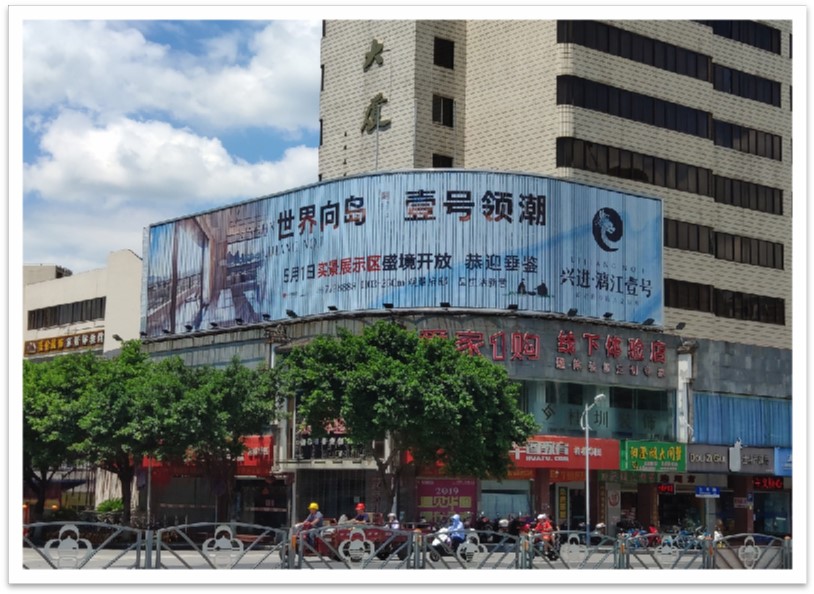 此戶外廣告牌位于桂林市中心上海路,稚山立交橋旁的民航大廈墻面,每天數(shù)萬車輛從臨桂、機(jī)場、火車站,經(jīng)過此地,是桂林市最擁堵的道路之一。