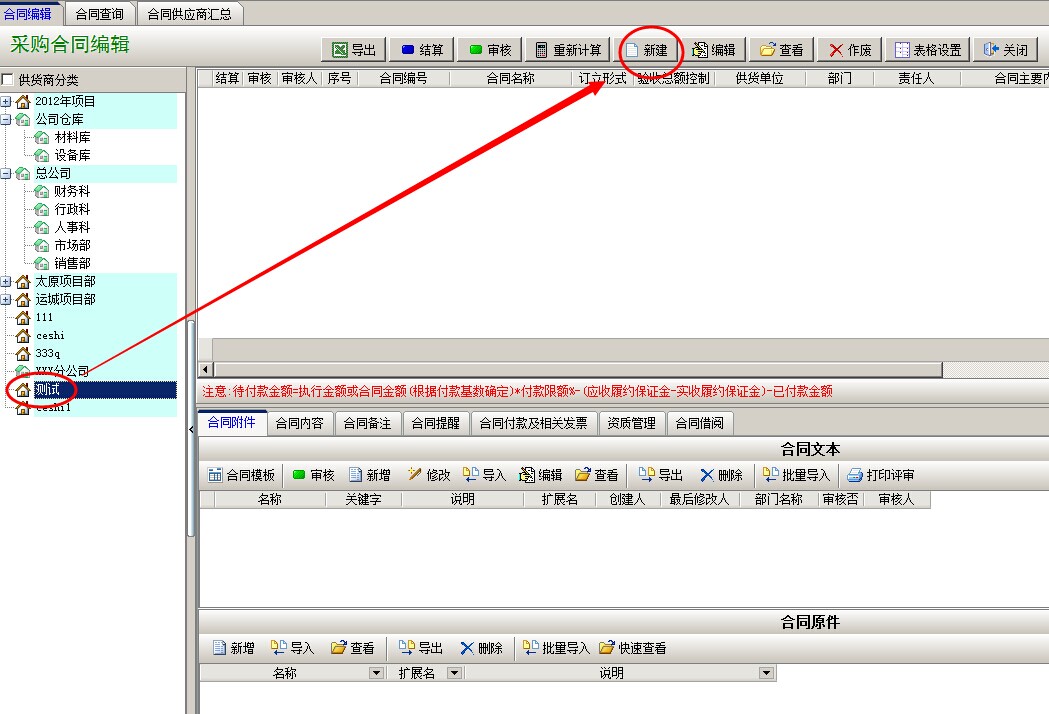 打開采購合同,左側(cè)選擇相應(yīng)的項(xiàng)目,右邊點(diǎn)新建,錄入采購合同相關(guān)信息,保存。