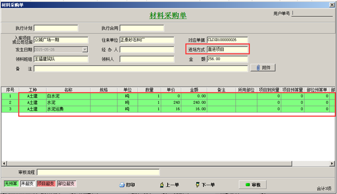 1無預算,沒有采購計劃以及采購合同的情況,可進行直接采購,做采購入庫單采購入庫或直進項目,這種工程項目材料采購流程適合項目上零星材料的采購。如圖: