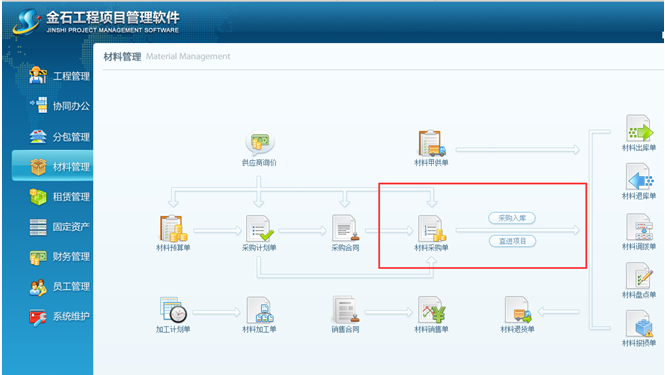 金石工程項目管理軟件材料采購流程可根據企業不同的情況執行不同的工程項目材料采購流程。