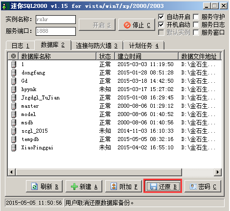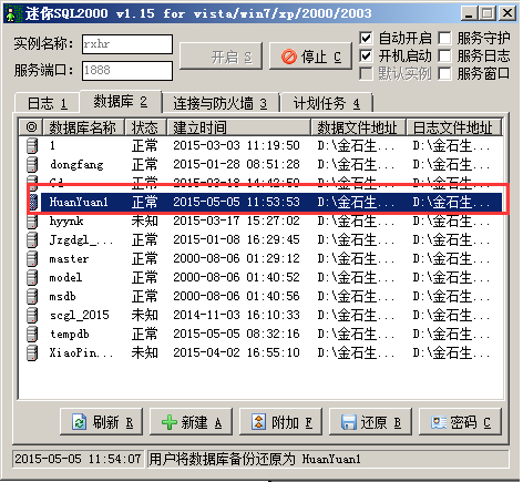 還原完成后可在數(shù)據(jù)庫中看到還原的數(shù)據(jù)庫,如圖: