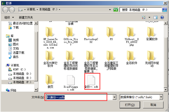 數(shù)據(jù)還原時,在迷你SQL2000對話框中點擊“還原”的按鈕彈出“打開對話框”,選擇要還原的數(shù)據(jù),點擊“打開”,如圖: