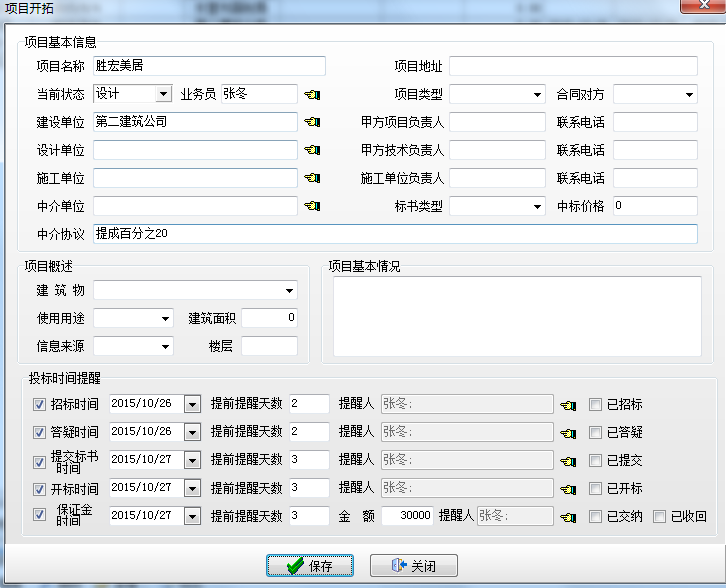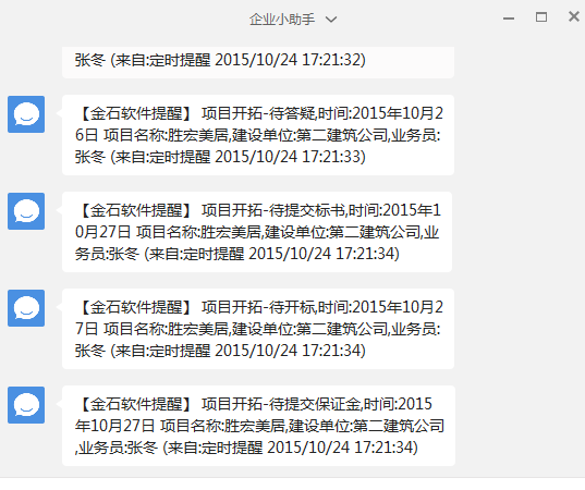 在提醒中心后臺,合同提醒及項目開拓可設置定時提醒功能
