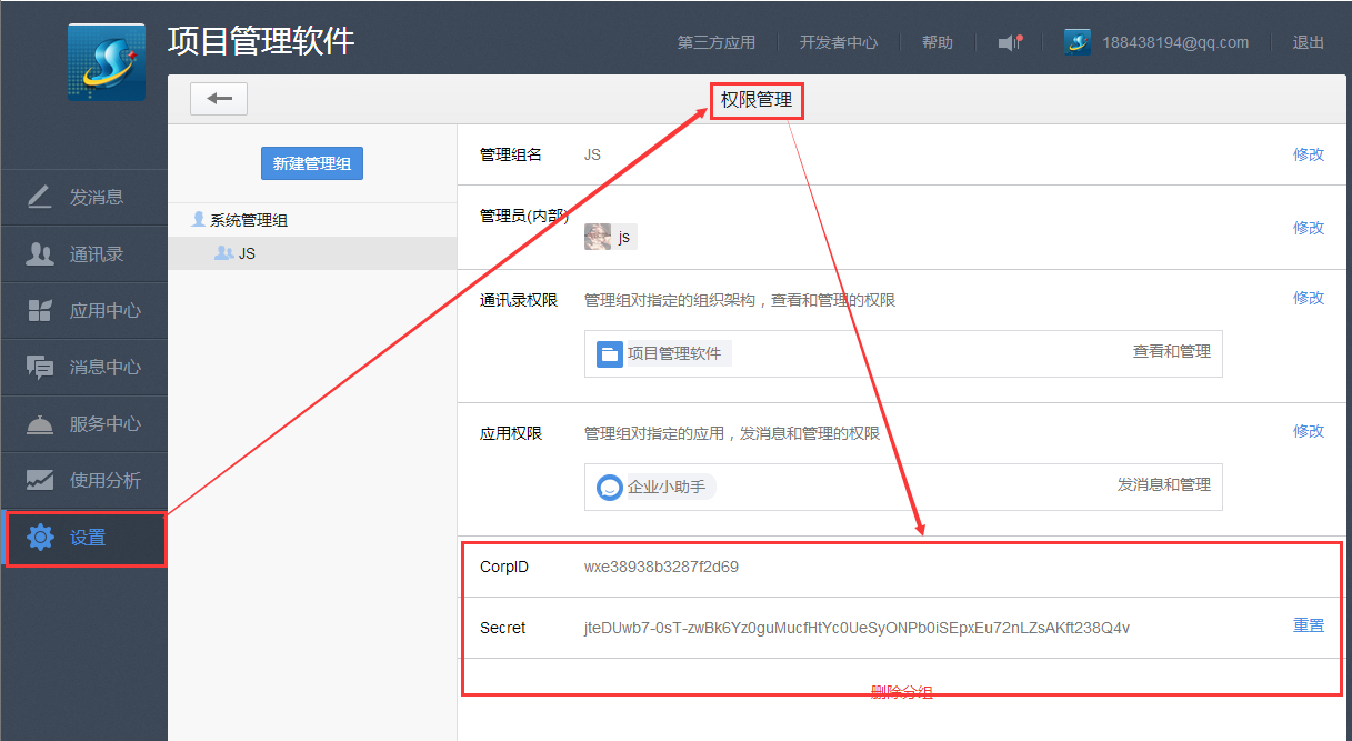 3.獲取corpid, corpsecret和agentid