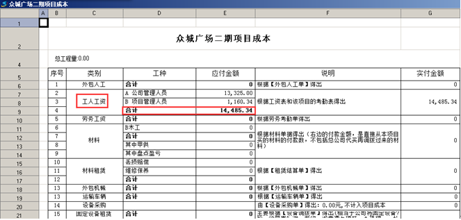 “眾城商場一期”項目成本-“工人工資”,如圖: