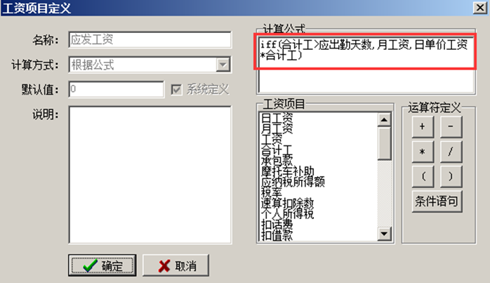 二、工程管理軟件中應發工資如何定義公式。