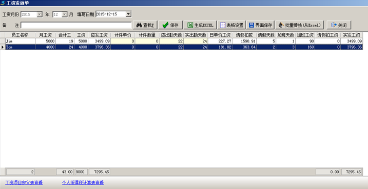 則按照工資項目定義,生工工資表如圖: