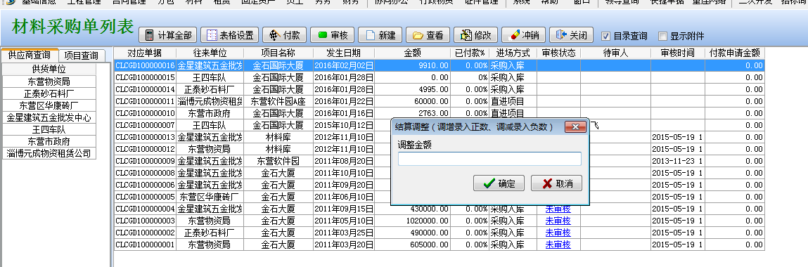 工程項目管理軟件結算調整