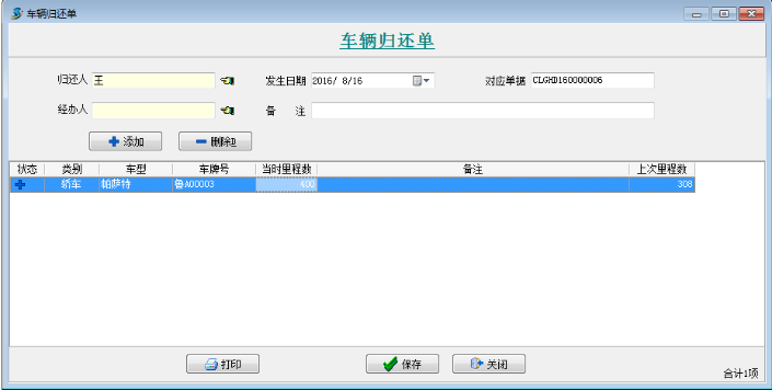 主要包括【車輛借出單】【車輛里程單】【車輛歸還單】