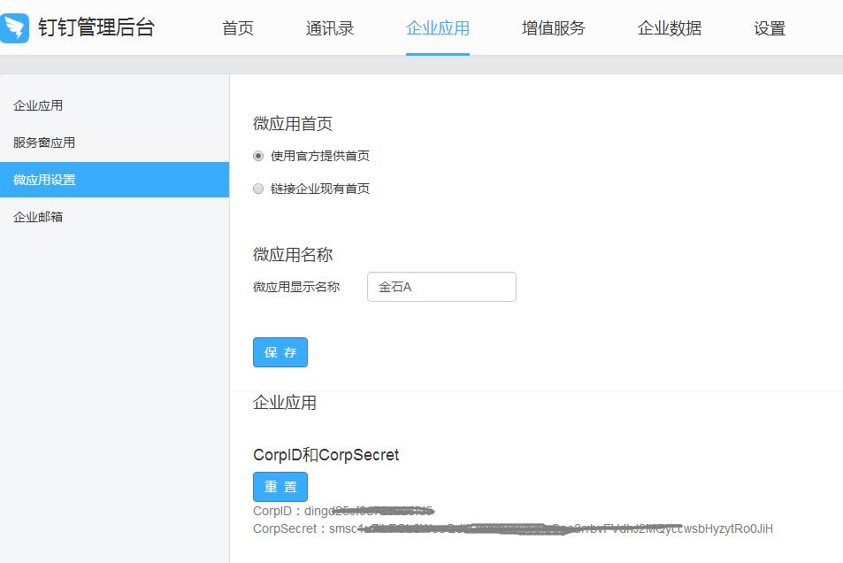 在企業應用==》微應用設置中找到兩個參數 如圖: