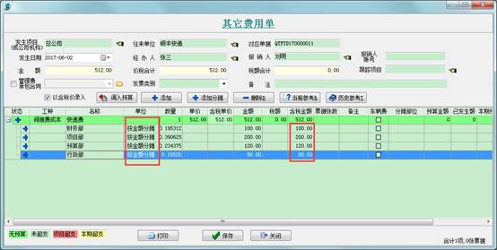 在這里顯示的就是分攤到各部門上的費用金額。