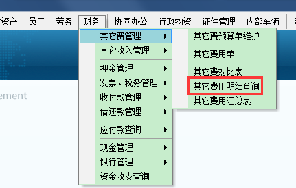 費用名稱選擇快遞費,然后點擊模糊查詢按鈕,查詢結果如下,