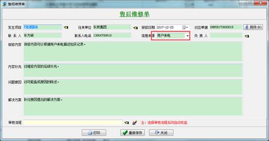 第一種情況:用戶直接來電,我方自行登記售后維修單;