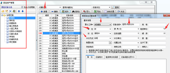 可以在圖中選擇種類,也可以自建新的項(xiàng)目,錄入后的設(shè)備信息可以在里面查詢到,并且可以觀察狀態(tài),比如說是否使用、歸屬公司、存放地點(diǎn)。