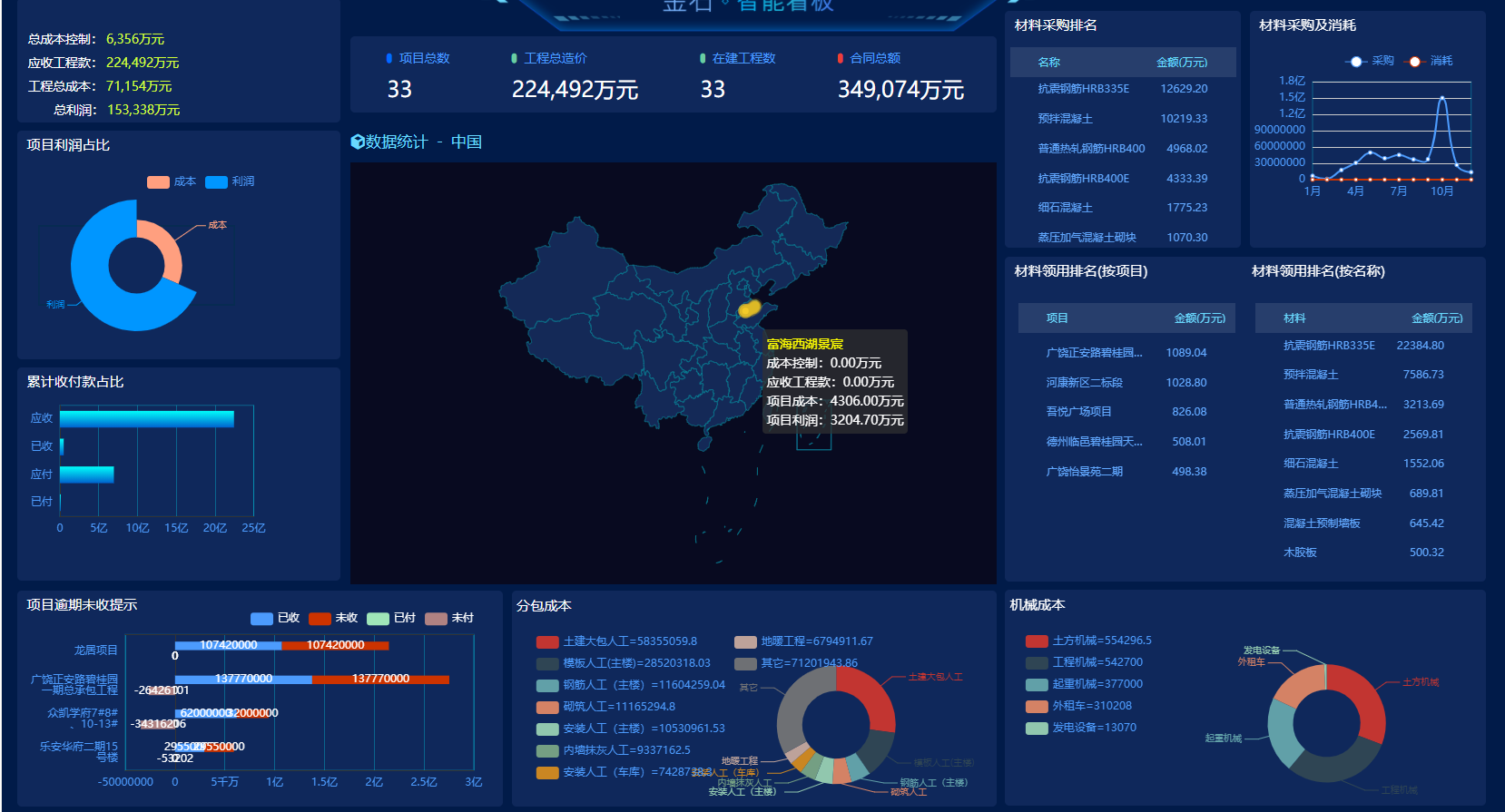 所涉及的材料成本、分包成本、租賃成本、固定資本和其他雜費,包括預算成本、計劃成本、計劃成本等全過程的成本計算和控制系統一次解決、最后,計算資金的靜態管理規模,實施項目預算和項目進度計劃監督與控制列入實時的管理路軌,使公司及項目各職能部門可隨時監管項目的進展及預算執行情況,以做出決策。