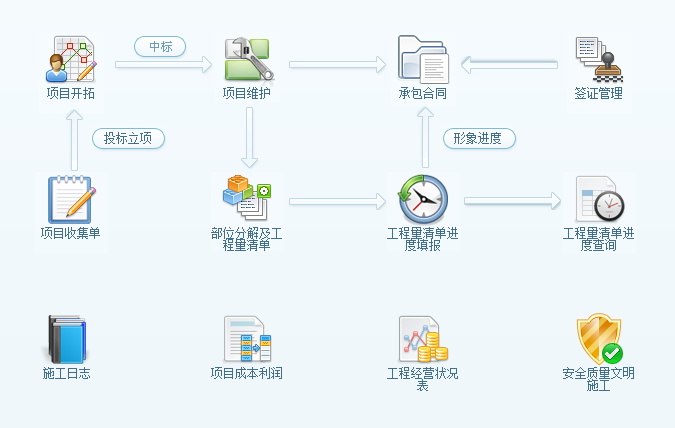 機電工程項目管理軟件幫助企業對項目的任何一個節點都可以立即掌握項目的最新成本數據,然后與設定的目標成本和項目收入一起進行、縱向比較,控制利潤和預測利潤一目了然。在系統強有力的計算分析下,精益管理(如:計算一定時間內)XX項目的盈利和經營已經成為現實。