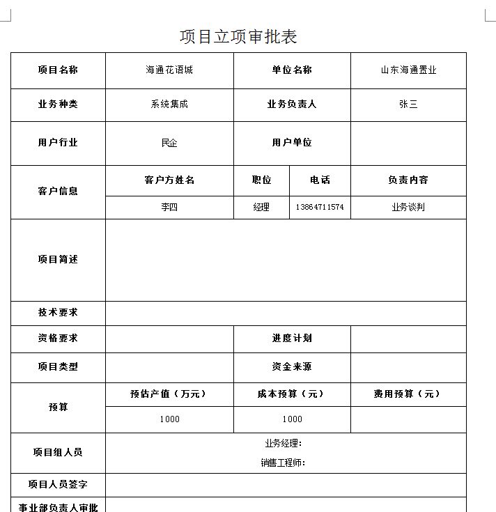 項目收集單:主要是用于項目投標前的收集,公司銷售人員將在“政府網站” 、“自己開拓”等項目前期信息歸檔并走相應的公司內審批流程,確定哪些項目我們可以去參與投標。