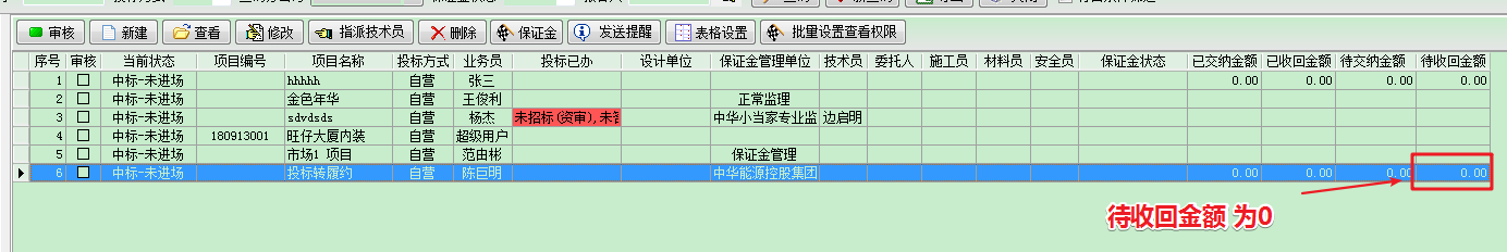1、先說第一種情況。項(xiàng)目開拓中,如下圖所示,做保證金的繳納。