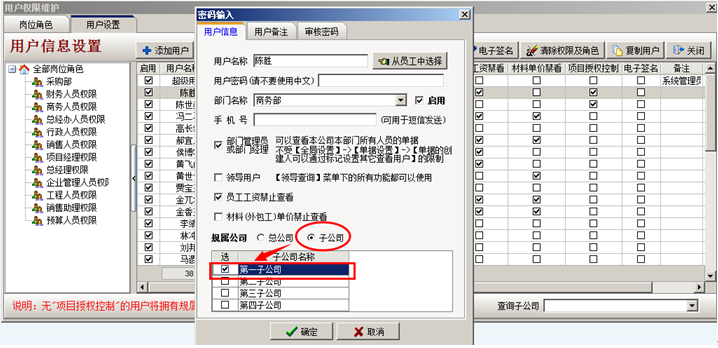 員工陳勝設(shè)置了子公司權(quán)限,只歸屬于第一子公司,軟件中總公司單據(jù)和信息無權(quán)查閱