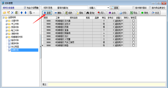 1.工程項(xiàng)目管理軟件—材料維護(hù)【材料管理】→【材料信息維護(hù)】