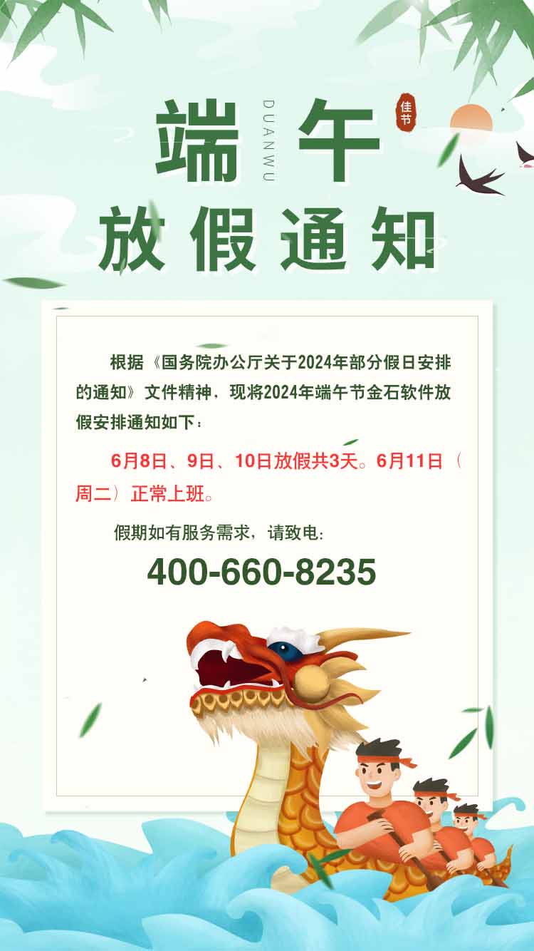 金石軟件定于2024年6月08日-10日放假,假日服務(wù)熱線:400-660-8235