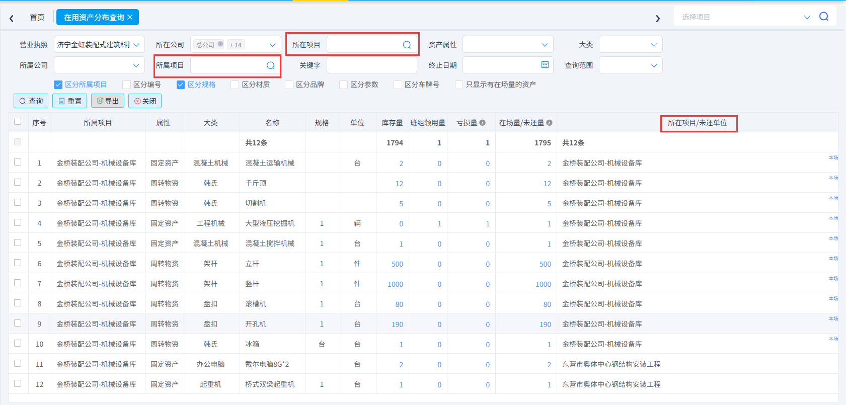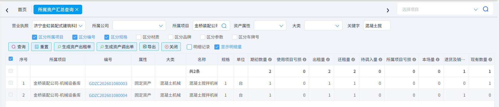 資產(chǎn)歸屬權(quán)項目的庫存量及租還情況進行精準(zhǔn)查詢