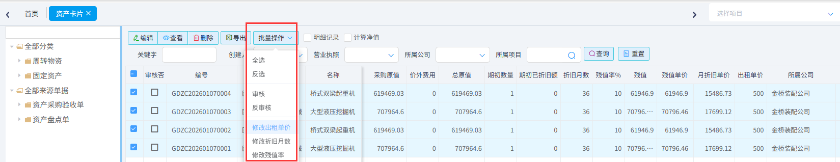 資產(chǎn)卡片用于全面追蹤和管理資產(chǎn)的全生命周期。具體包括: