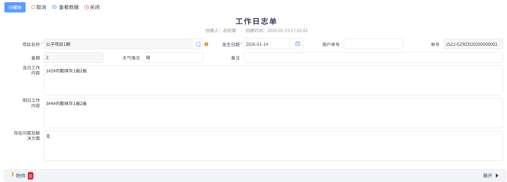 工作日志單主要體現(xiàn)當(dāng)日工作內(nèi)容、明日工作內(nèi)容以及存在的問(wèn)題和解決方案,如下圖所示: