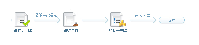 2、項目上報采購計劃 ->相關人員逐級審批通過->辦理采購->驗收入庫 (適合項目上大材批量采購,不需要簽訂供貨合同的)