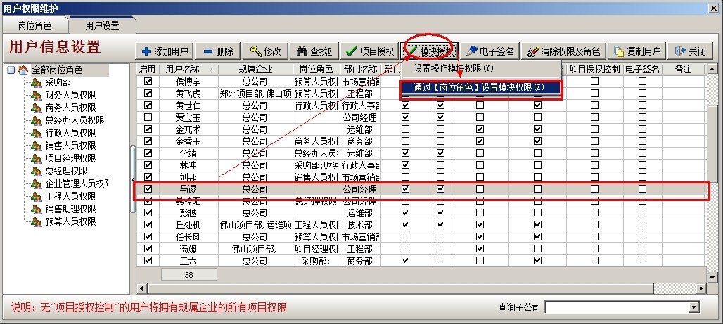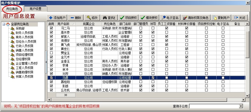 其他人員同樣的設置,對于相同部門權限相同的人員賦予同樣的角色即可。
